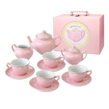 Classic and chic pink porcelain tea set with silver edging in a beautiful carrying case. Generously-sized pieces feel so grown up. Classic and chi...